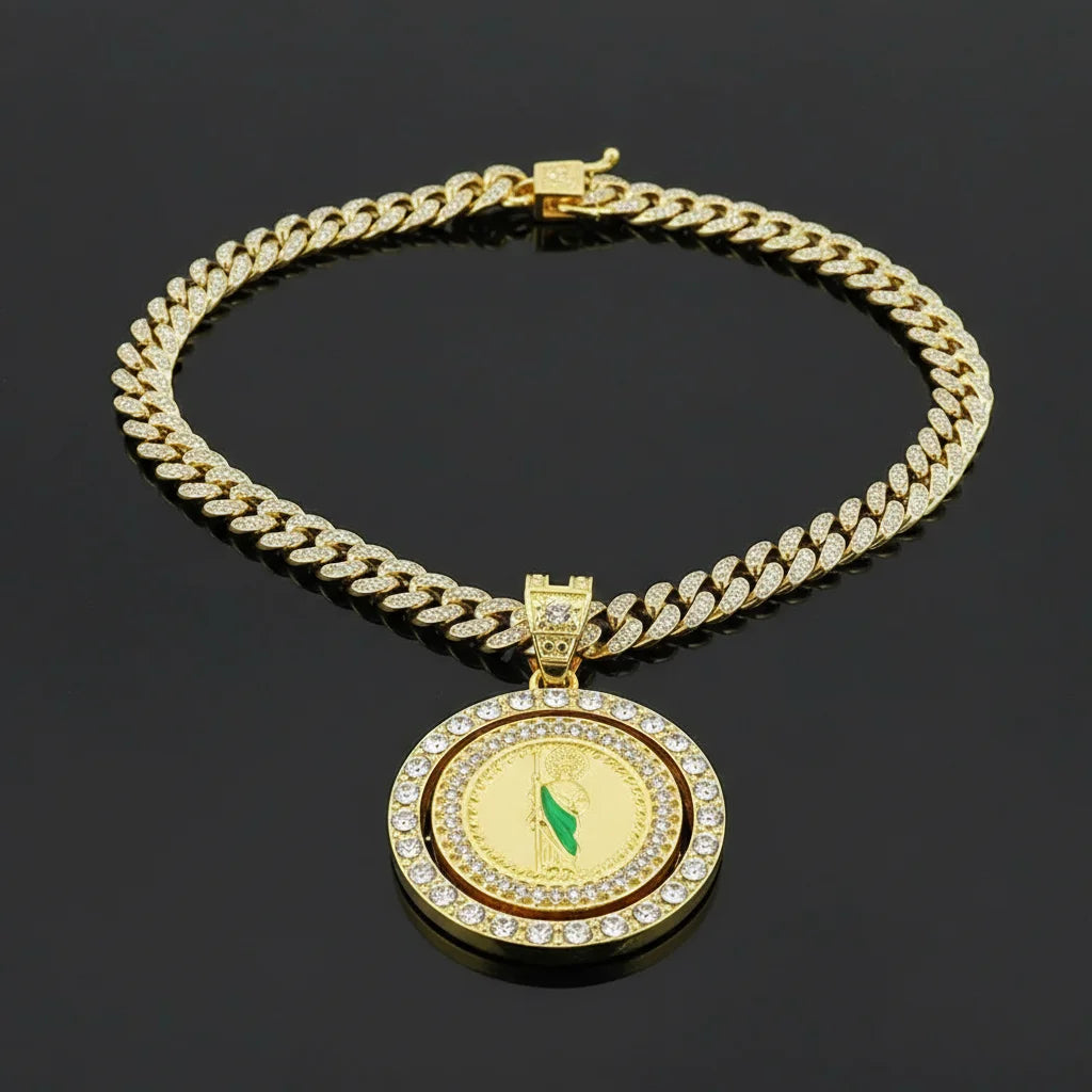 Our Iced Out Cross Pendant features meticulously set, high-quality sparkling stones on a robust 4mm chain, designed to deliver maximum brilliance and a luxurious feel that truly stands out.