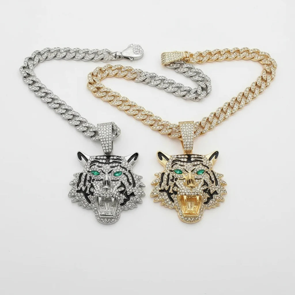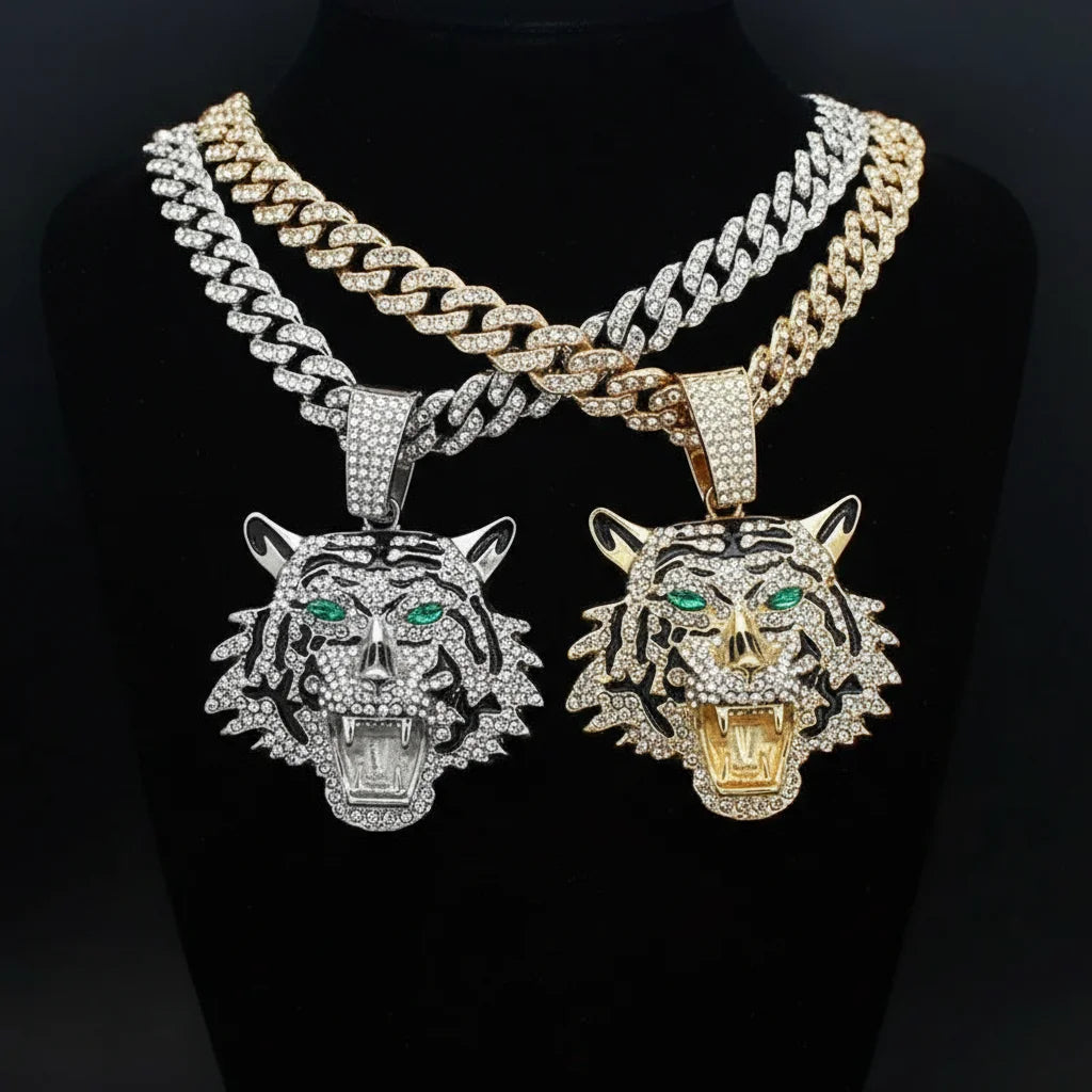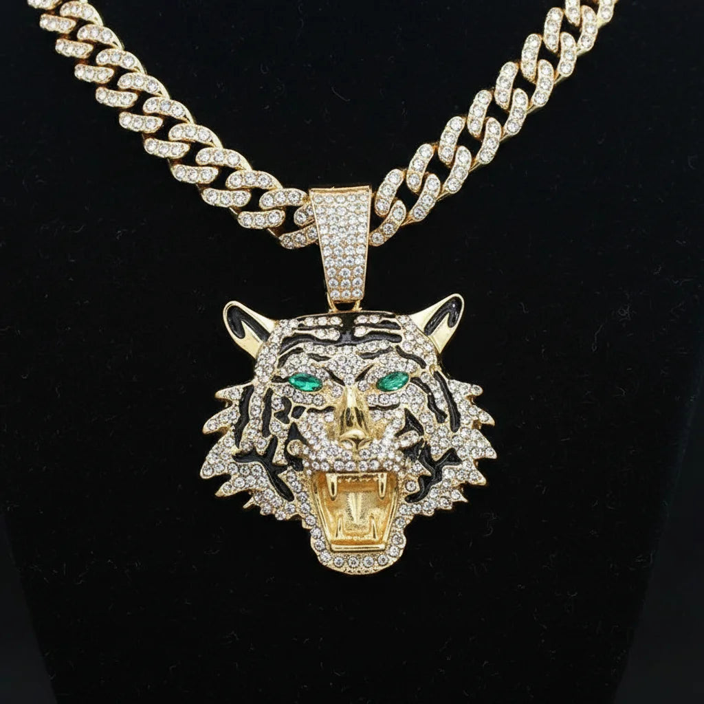 Iced Tiger Pendant: Unleash Your Untamed Presence